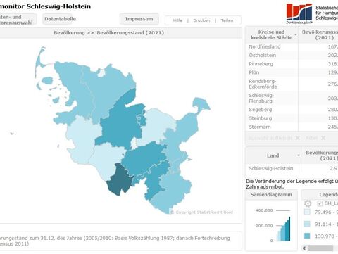 Das Statistikamt Nord hat den Kreismonitor Schleswig-Holstein mit den Daten des Jahres 2021 aktualisiert.