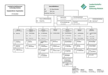 Die Organe der Landwirtschaftskammer sind die Hauptversammlung, der Vorstand mit Präsidentin als Spitze des Ehrenamtes und der Geschäftsführung als hauptamtliche Führung. Die Arbeit der Landwirtschaftskammer Schleswig-Holstein wird vom Ehrenamt gelenkt. Der Vorstand besteht aus der Präsidentin und zwei Vizepräsidenten, einem Vertreter der Arbeitgeber und einem Vertreter der Arbeitnehmer. Die weiteren Vorstandspositionen sind ebenso paritätisch besetzt (Arbeitgeber, Arbeitnehmer). Es sind neun Personen im Vorstand. Höchstes Beschlussorgan der Landwirtschaftskammer ist die Hauptversammlung.
